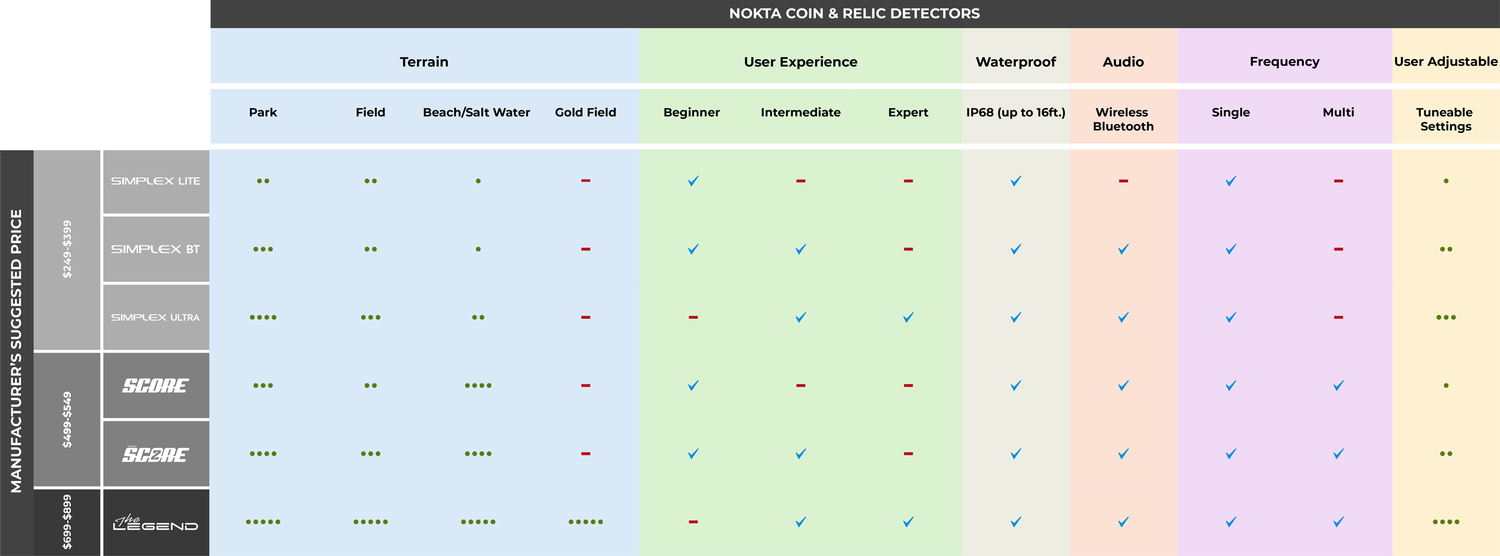 Nokta's first simultaneous multi frequency metal detector The LEGEND is loaded with features that makes it the best multi-purpose detector, adaptable for all types of targets and ground conditions.